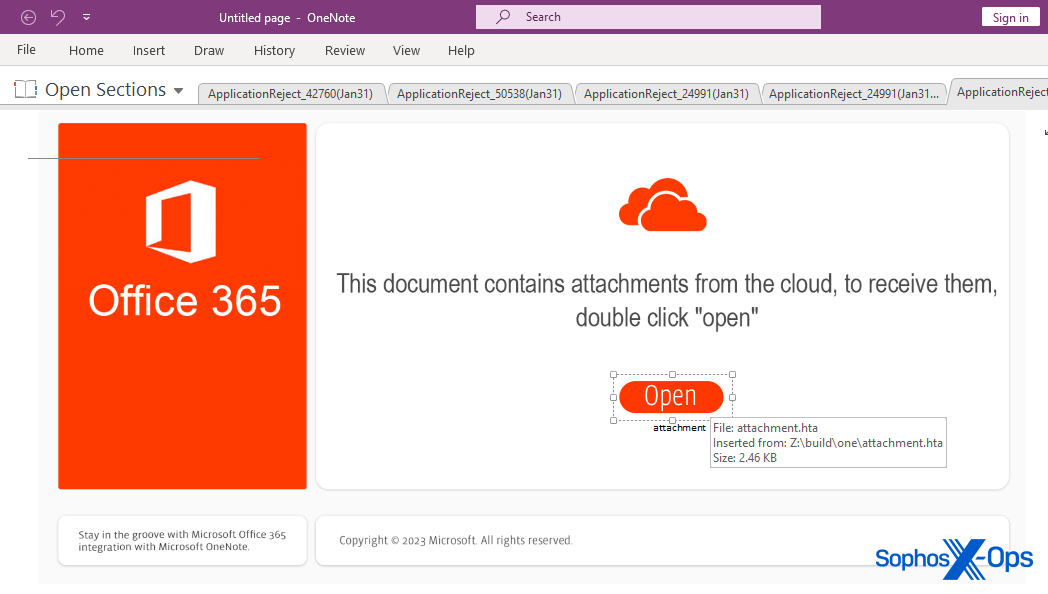 ソフォスは今年に入ってから、これまではあまり悪用されていなかった、OneNote アプリケーションで使用される .one ファイルという Office ファイルのフォーマットを利用するマルウェア攻撃の増加を調査してきました。他のいくつかのセキュリティ企業も同様に調査を進めています。