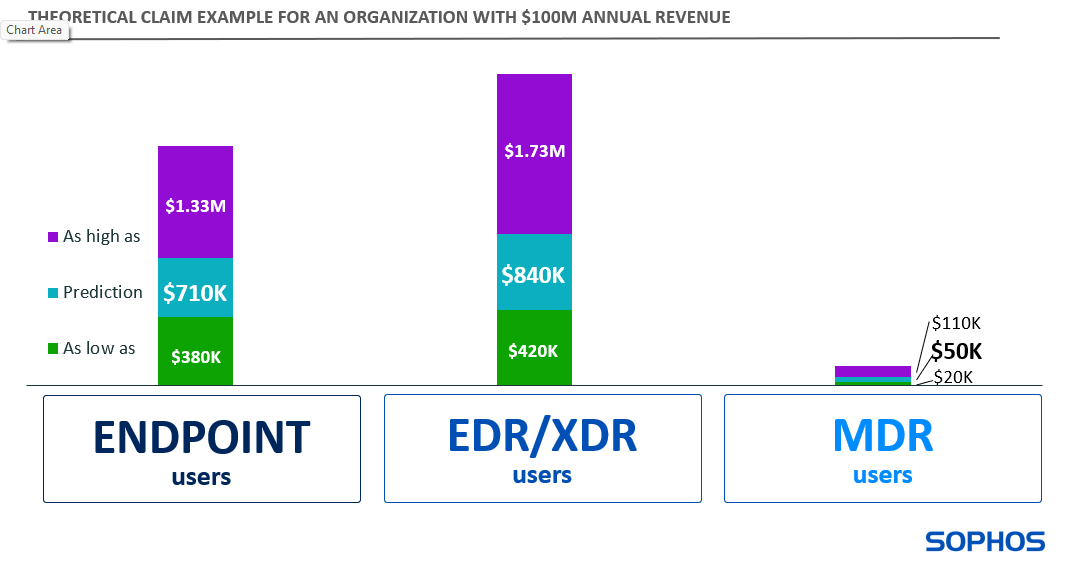 このデータは、エンドポイント保護に加えて EDR または XDR ツールを使用することの利点も示しています。EDR/XDR ユーザーの平均請求額は、エンドポイントユーザーの 6 分の 1 (50 万ドルに対して 300 万ドル) でした。