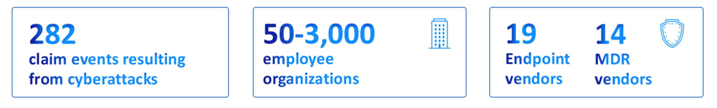 誤解を避けるため、本調査はサイバー攻撃を原因とする保険金請求のみに焦点を当てており、その他の理由 (たとえば、サイバーセキュリティベンダーの機能停止や偶発的なデータ損失による事業への影響) によるサイバー保険契約に基づいた請求は除外しています。
