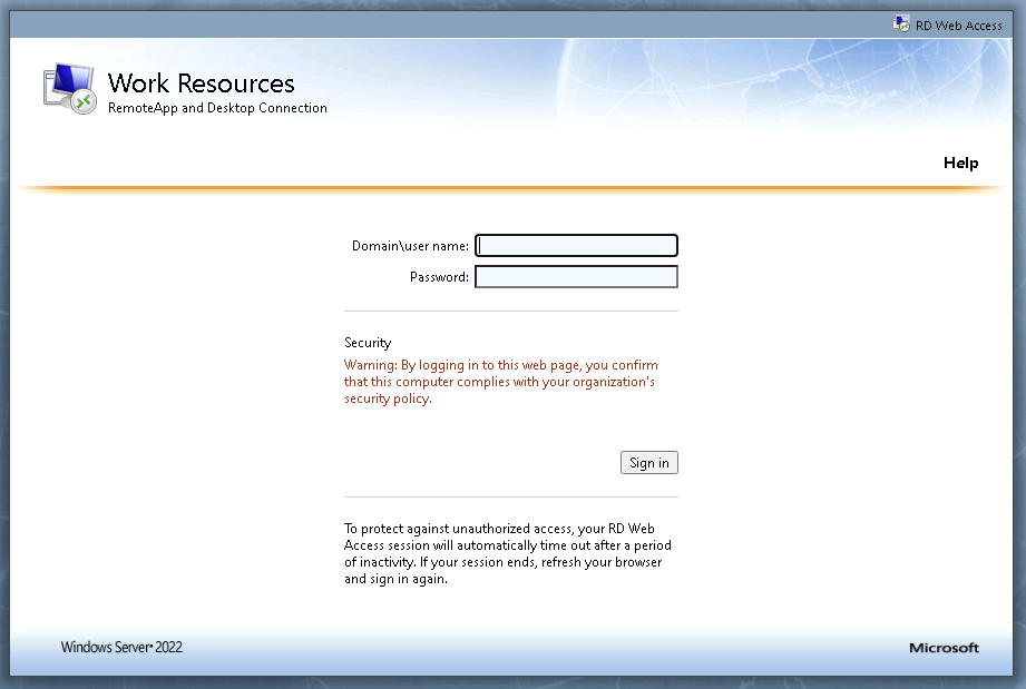 図 2: RD Web Access ポータルのデフォルトのログインページ