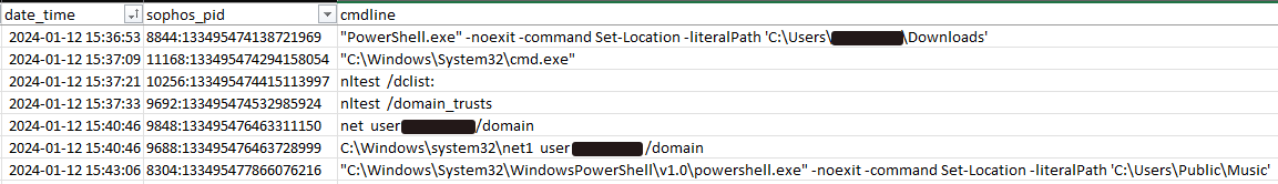 SELECT meta_hostname, date_format(from_unixtime(time), '%Y-%m-%d %H:%i:%s') as date_time, username, cmdline, name, path, sophos_pid, parent_name,parent_cmdline,parent_path, parent_sophos_pid, uid, gid,file_size, sha1, sha256 FROM xdr_ext_data WHERE query_name = 'running_processes_windows_sophos' AND username = '$$username$$' ORDER BY date_time DESC