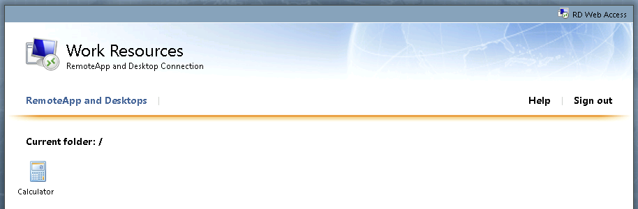 図 3: 公開されている仮想アプリケーションが 1 つだけ表示される RD Web ポータル