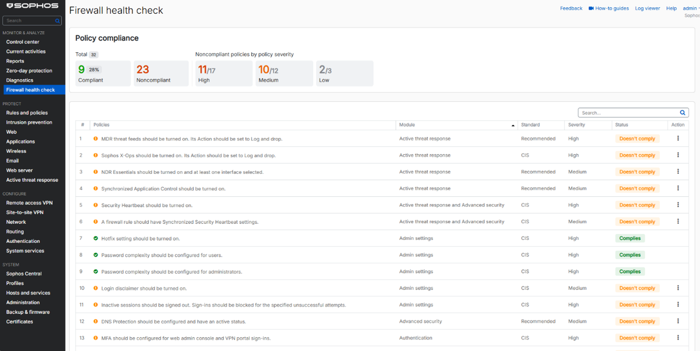 強固なセキュリティ体制を維持するには、ファイアウォールが最適に構成されていることが不可欠です。Sophos Firewall v22 では、新しいヘルスチェック機能により、ファイアウォールの設定を評価し、改善する作業がこれまで以上に簡単になりました。