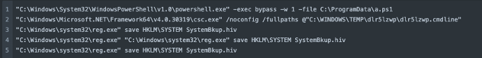 “cmdline”: “C:\WINDOWS\system32\reg.exe\” save HKLM\SYSTEM SystemBkup.hiv”