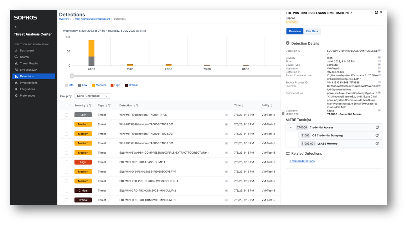 Sophos XDR では、検出のユーザーエクスペリエンスが一新され、最も重要なデータを一目で把握できるようになりました。また、強化ピボットやアクションに簡単にアクセスできるため、調査を迅速化できます。