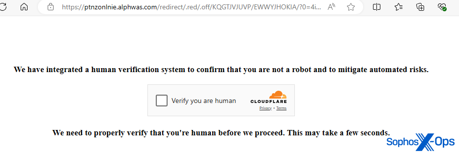 このリンクは CloudFlare キャプチャゲートの背後にあるフィッシングページにつながっています。人間であることを証明するチェックボックスをオンにすると、フィッシング詐欺グループが運営するページにリダイレクトされ、本物の Office365 のログインダイアログが表示されます。