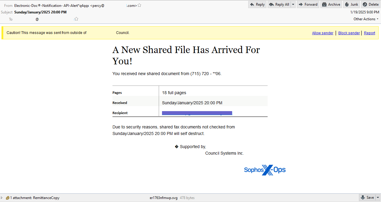 .svg ファイルが添付された電子メールメッセージから始まったこの攻撃は、昨年末から広がり始め、1 月中旬以降、大幅に増加しています。