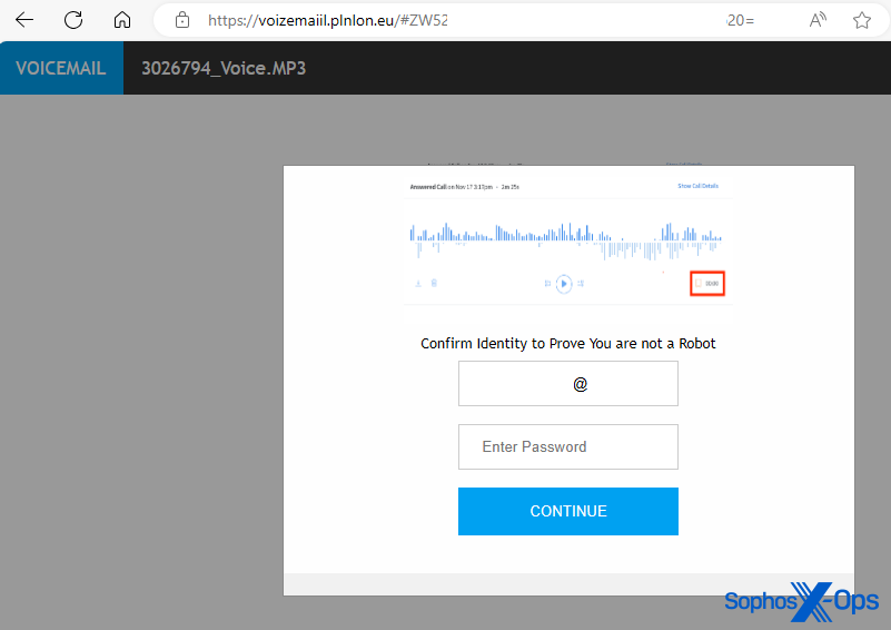 1 週間の間に、ソフォスはフィッシングページがより巧妙なものになっていくのを観察することができました。この「ボイスメール」ページのように、デザイン性の低いページの見栄えがよくなっていきました。