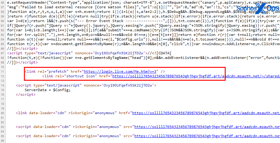 フィッシングページはすべて、攻撃者の管理下にあるドメインでホストされていました。前述したように、自動的にアクセスするのを防ぐために、ほぼすべてのページに CloudFlare CAPTCHA が仕掛けられていました。これらのサイトは、login.live.com から Office365 のログインダイアログのコンテンツをプリフェッチし、O365 ユーザーには見慣れたアニメーションを表示します。