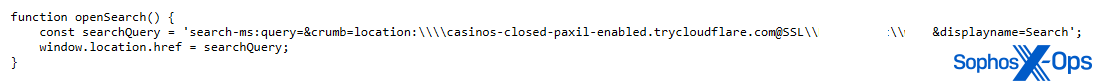 また、別の SVG には、たとえユーザーがホットリンクされたコンテンツをクリックしなくても、少し遅れて自動的にフィッシングページを読み込む、手の込んだ JavaScript が含まれていました。