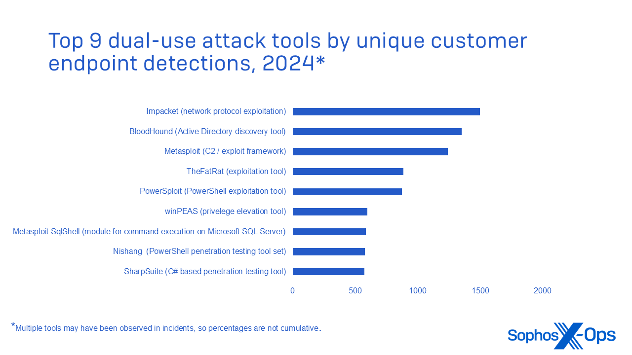 図 18: ソフォスのエンドポイント検出で確認された「デュアルユース」攻撃ツール上位 9 件