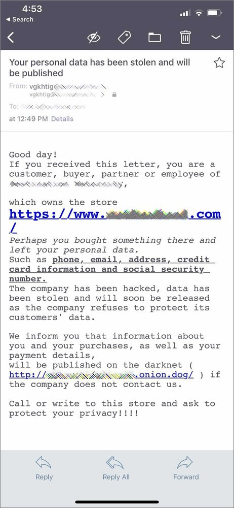 1.盗んだデータをオンラインで公開したりオークションで売却したりすると脅迫する