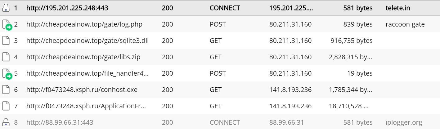 この仕組みを使用すると、通信が遮断されたときにゲートを切り替えることができます。ゲートアドレスを取得した Raccoon は、C2 と通信するためにゲートに接続します。