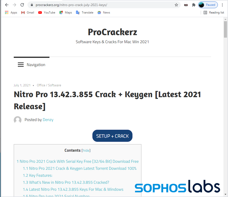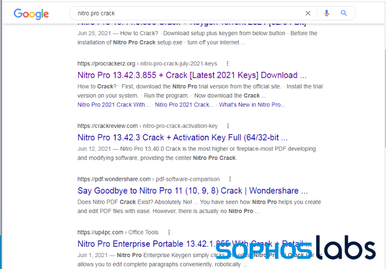 Google をはじめとするインターネット検索で、クラッキングされたソフトウェアを検索すると、この攻撃に関連するサイトが結果の上位に表示されるように検索エンジンが最適化されています。また、これらのサイトは、「warez」 (海賊版ソフトウェア) に関する動画を配信する YouTube チャンネルでも宣伝されています。テレメトリでは、2 つのドメイン (gsmcracktools.blogspot.com と procrackerz.org) でサンプルを発見しました。