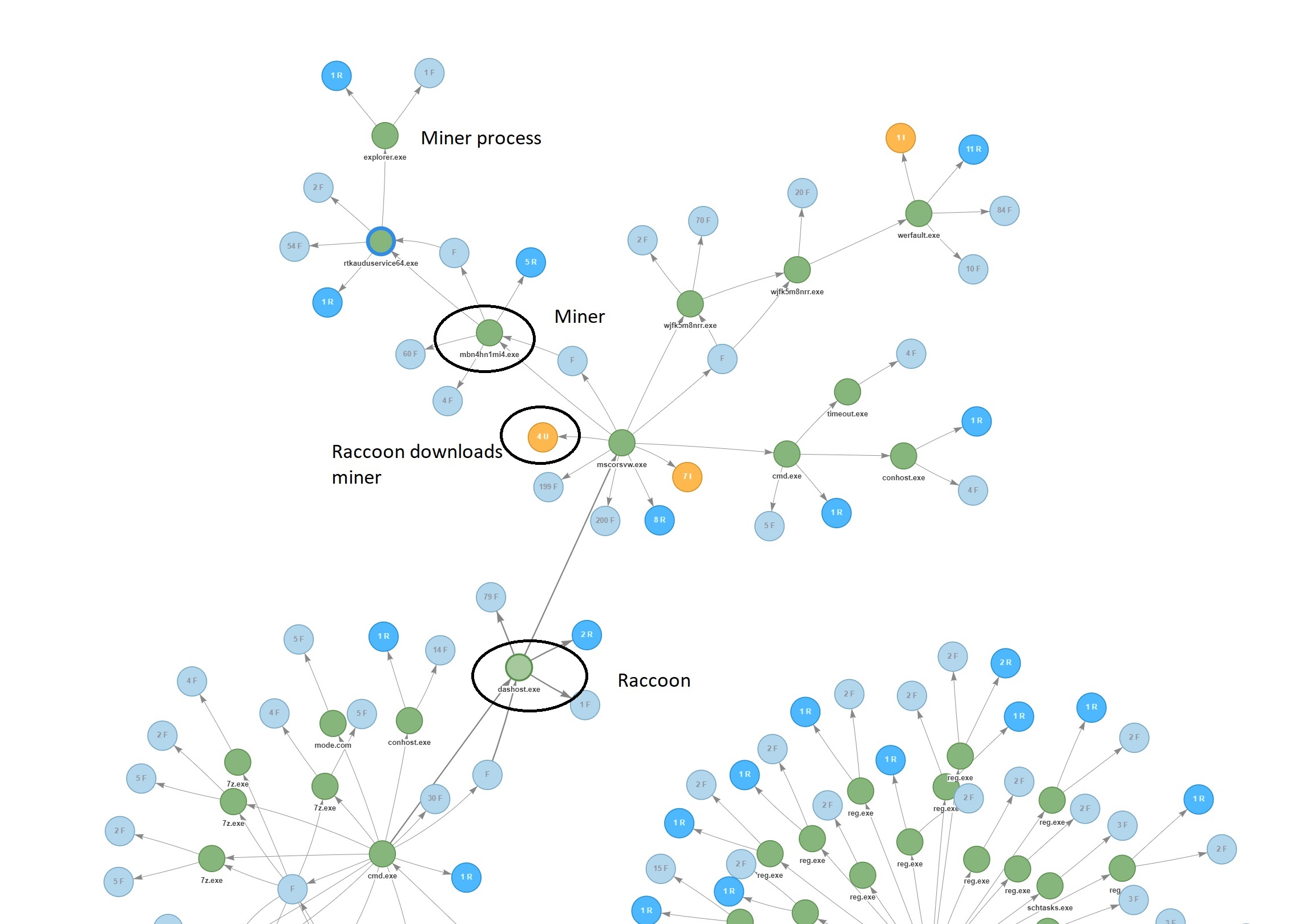 マルウェアがこれほど多様であるということは、これらのドロッパーは「サービスとしてのドロッパー」である可能性が高く、Raccoon Stealer を使用している攻撃者とは直接関係がないと考えられます。このキャンペーンの詳細については、今後報告する予定です。