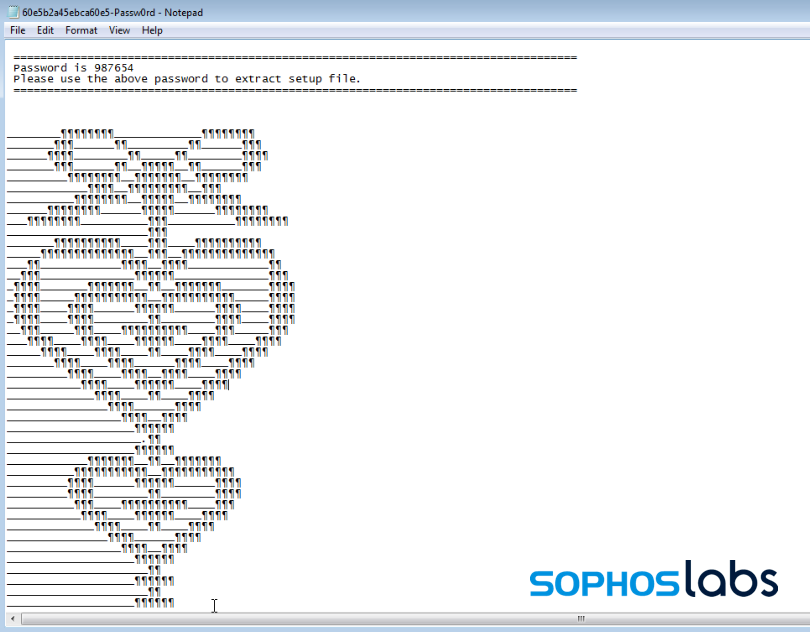 パスワードで保護されたフォルダー内のペイロードは、自己解凍型のインストーラーです。7zip や Winzip SFX などのツールによる自己解凍型アーカイブに関連付けられた署名を持っていますが、これらのツールでは解凍できません。署名が偽装されているか、ファイルのヘッダーがドロッパーの実行者によって操作され、実行しないと解凍できないようになっています。