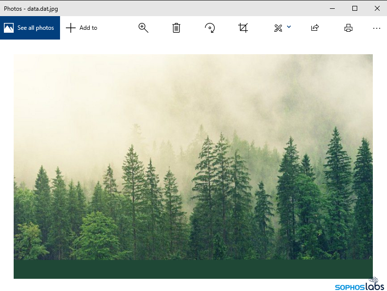 アーカイブには、Readme!.txt に記載されているように、data.dat というファイルが含まれています。よく見てみると、それは森林の JPEG 画像です。これで何かが起動するとは思えません。