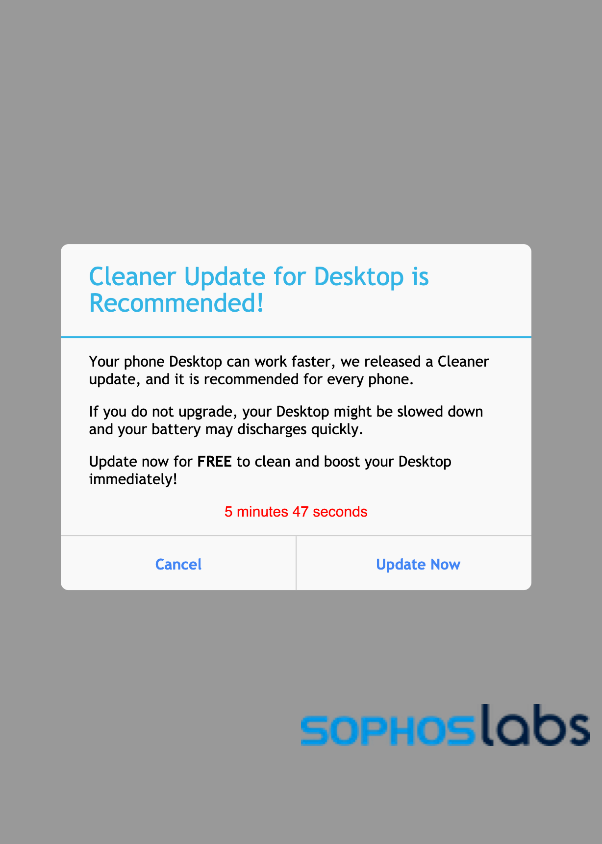Other mobile fake alerts generate profit through much more automated means, trying to fleece victims through fake alerts that urge the installation of potentially unwanted mobile applications, including fraudulent virtual private networks and “cleaner” applications.