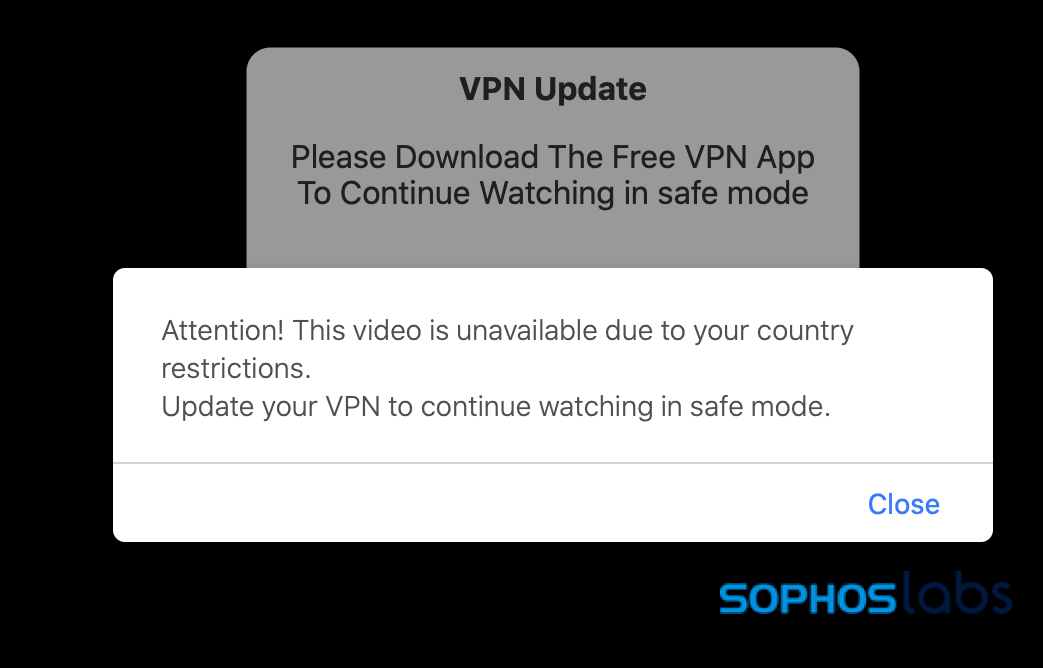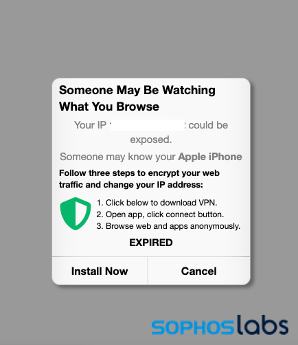 • highsecureus[.]com—a domain that has actively been pushing fake alert VPN ads to iOS devices since 2017.