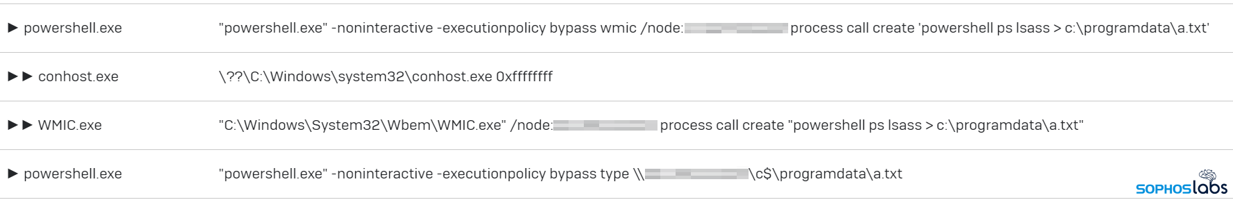 The attackers took a one day break and returned on March 18th to begin moving laterally through the target’s network and to establish multiple new footholds on different machines. They dumped the credentials from memory a second time, and used WMI and PowerShell to issue commands on other machines on the network.