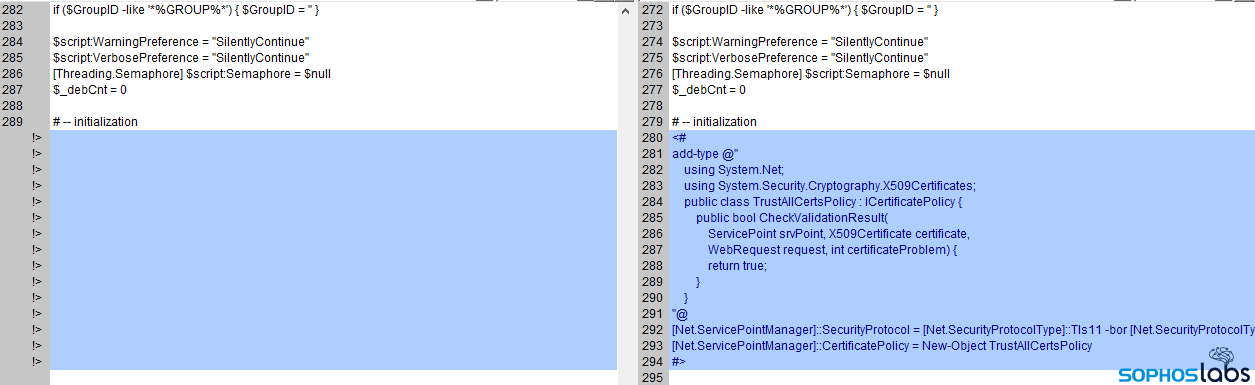 In most attacks of this nature we investigate, the eventual deliverable is usually a ransomware payload. When attackers begin to see their customized tooling get blocked by security products, they often rapidly escalate to deploy ransomware before they lose all access to the network. The countermeasures Sophos deployed effectively prevented them from taking that final step.