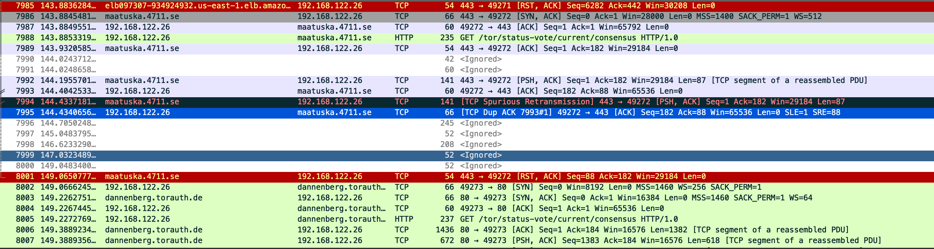 SystemBC then attempts to obtain data about the current Tor network consensus, connecting to hard-coded IP addresses with an HTTP GET request, but via ports 49272 and 49273. SystemBC uses the connections to download information about the current Tor network configuration.