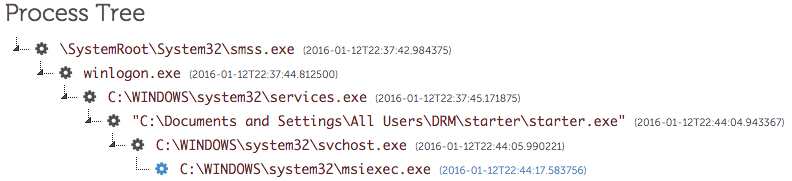The process tree showed the malicious code was running in the context of the legitimate msiexec.exe Windows process (see Figure 2).