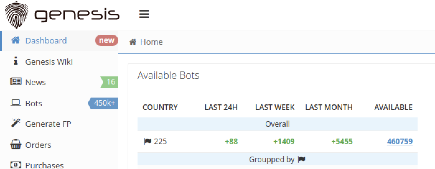 Genesis Market is an invitation-only marketplace that specializes in the sale of bots rather than logs. Bots are computers that were infected with infostealer malware to steal information and the browser fingerprint from a victim's web browser. The browser fingerprint can be used to impersonate the victim and access the victim's bank accounts, take over accounts, and make fraudulent purchases. A threat actor who purchases a bot has exclusive access to the data, including updates of the victim's data from the infected device.