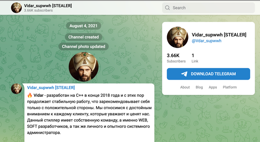 Figure 6. Vidar Telegram channel. (Source: Secureworks)