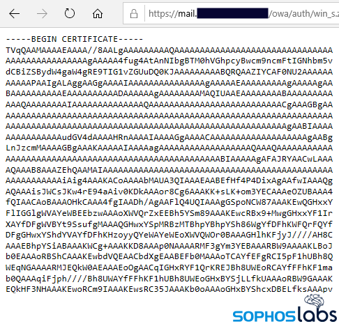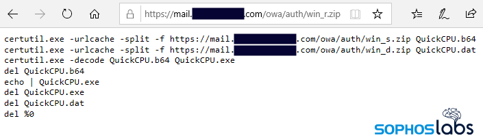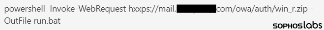 The SophosLabs team was inspecting telemetry when they came across the unusual attack targeting a customer’s Exchange server. The attack begins with a PowerShell command to retrieve a file named win_r.zip from another compromised server’s Outlook Web Access logon path (/owa/auth).