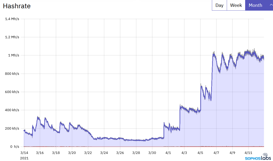 According to the Monero blockchain, the wallet began receiving funds on March 9 (the Patch Tuesday in which the Exchange updates were released as part of the update cycle), which corresponds with when we saw the attack begin. As time has gone on, the attacker lost several servers and the cryptomining output decreased, but then gained a few new ones that more than make up for the early losses.