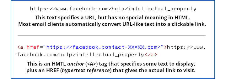 Instead, it’s an HTML email containing an HTML link where the text of the link looks like a URL, but where the actual link (known as an href, short for hypertext reference) goes off to the crook’s imposter page: