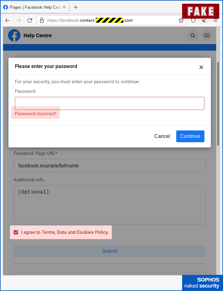 This is a common trick used these days, and we assume it’s because there’s a tired old piece of cybersecurity advice still knocking around that says, “Deliberately put in the wrong password first time, which will instantly expose scam sites because they don’t know your real password and therefore they’ll be forced to accept the fake one.”