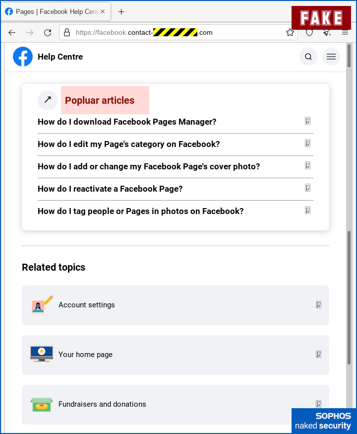 If you were to scroll down (or had more space than we did for the screenshots), you might have spotted a typo further along, in the content that the crooks added to try to make the page look helpful.