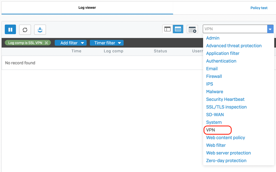 A new log viewer module selection for VPN is available, making it easy to monitor and troubleshoot VPN connections for both remote access and site to site type tunnels using either IPsec or SSL.